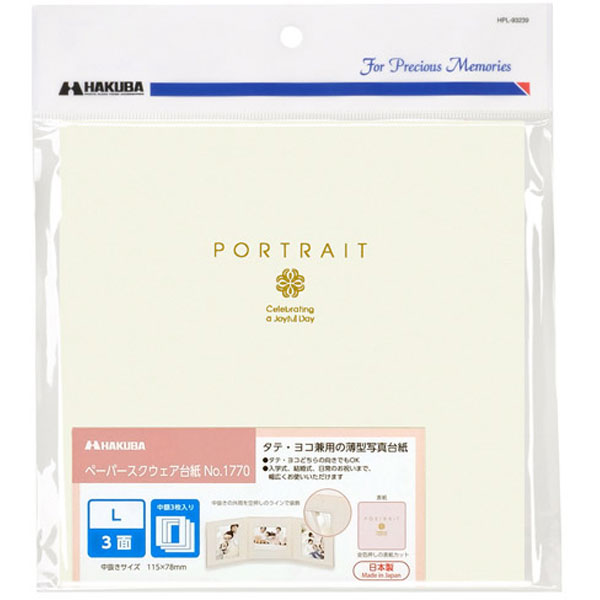 | 商品名 | ペーパースクウェア台紙 No.1770 L3面 クリーム M1770-L-3CR [タテヨコ兼用 /E・Lサイズ /3面] |