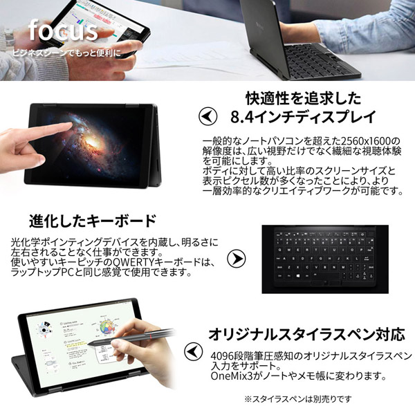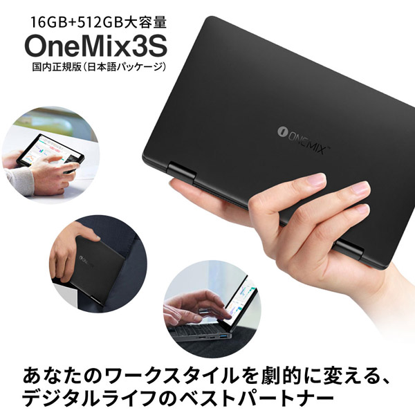 【在庫限り】 OneMix3S(コンバーチブル型) ノートパソコン ブラック ONEMIX3SJ-B5 [8.4型 /intel Core m3 /SSD:512GB /メモリ:16GB /2019年9月モデル]