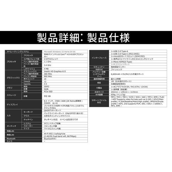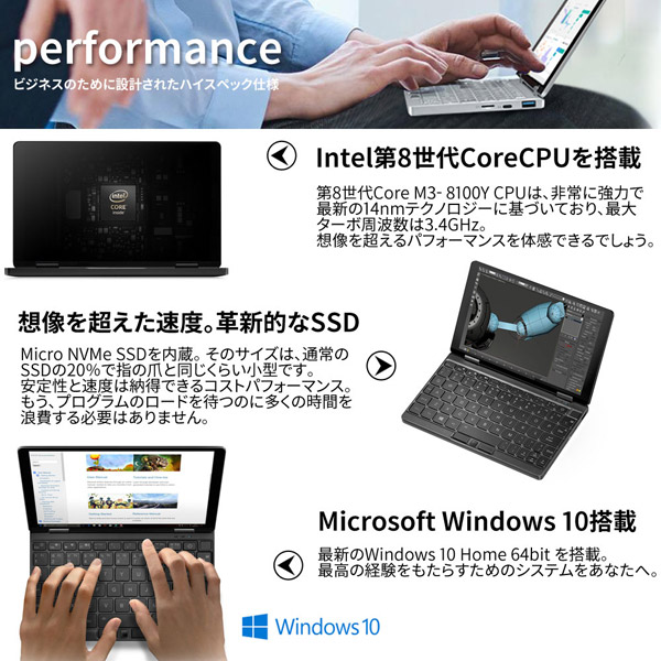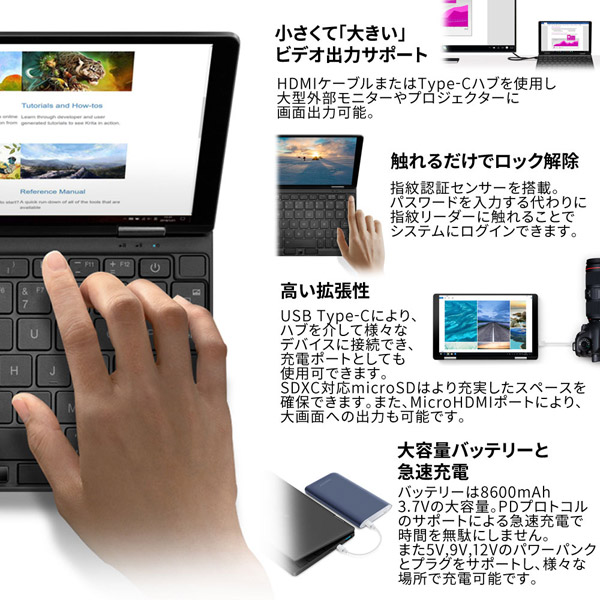 余裕の512GB SSD搭載。ブラックボディが際立つ実力派UMPC