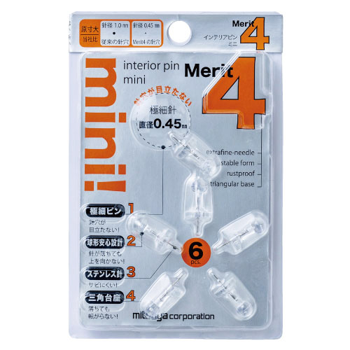 直径0.45mmの極細針で針穴が目立たない。落としても針が上を向かず、転がらない安心設計。サビにくいステンレス針採用。