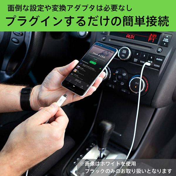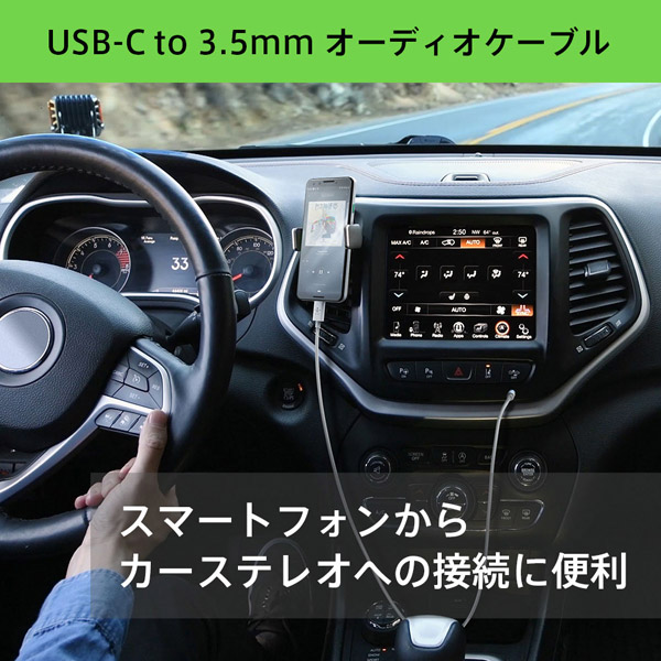 スマートフォンからカーステレオやスピーカー、ヘッドフォンへ接続する際に便利な、USB-C to 3.5mm オーディオケーブル。イヤホンジャックなしのUSB-Cデバイスをスピーカーにつなげてオーディオ出力が可能です。