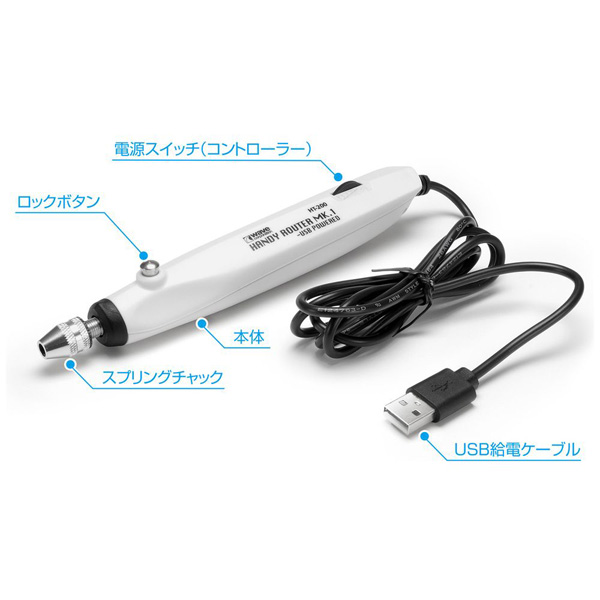 USB給電タイプの小型の電動ルーター。先端ビットが10本付。