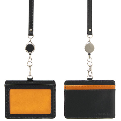 BP-5703 リール付き IDカードホルダー ブラックオレンジ