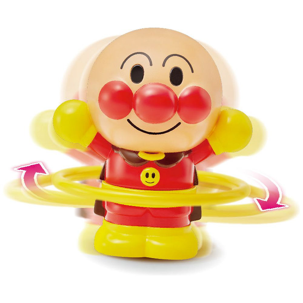 ゼンマイを回すと、アンパンマンが揺れながらフラフープを回すよ!