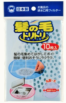 丸形の直径15cmタイプ。排水口に流れる毛髪をキャッチする不織布フィルターです