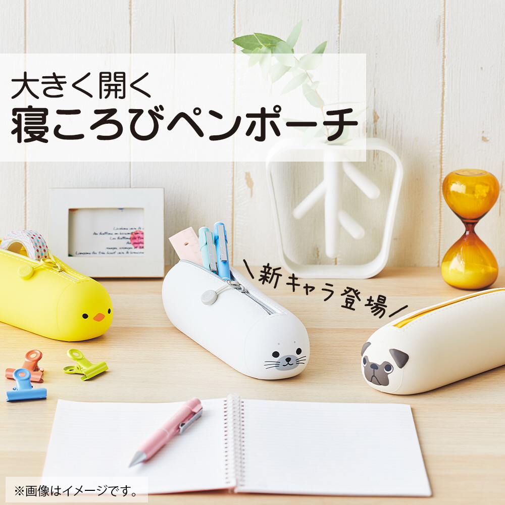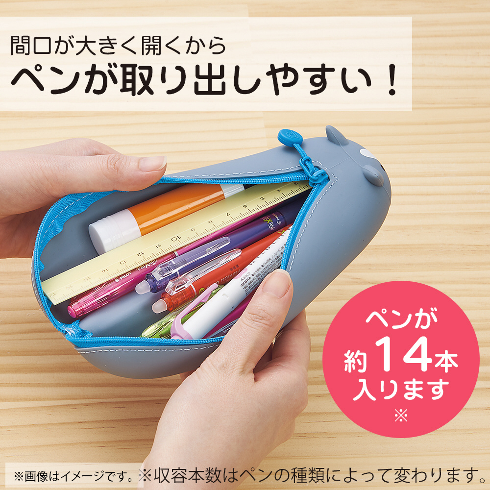 間口が大きく開くペンポーチ。間口が大きく開きます。ペンや文具小物入れに。底面は転がりにくいフラット仕様。