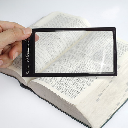 倍率1.8倍。手帳や文庫本に挟んで携帯できる超薄型拡大鏡。そっと忍ばせておけば、さっと取り出して拡大してみることがで便利です。