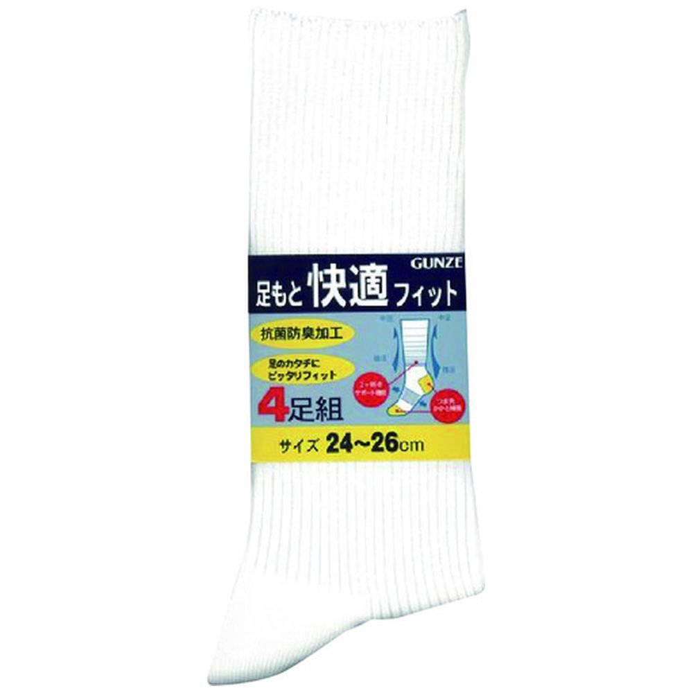 グンゼ 足もと快適フィット4足組ソックス27ホワイト 04094-27-025
