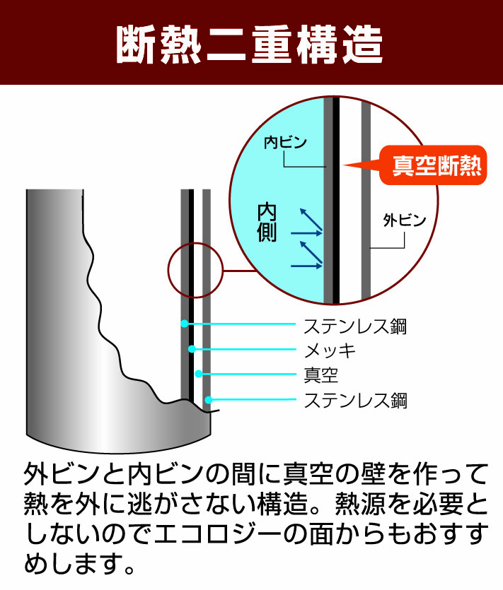 保冷専用!ステンレス真空断熱の魔法瓶構造で強力保冷!