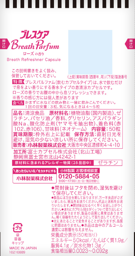 | 商品名 | 口臭ケア パルファム 飲むカプセル ローズ 50粒 |
