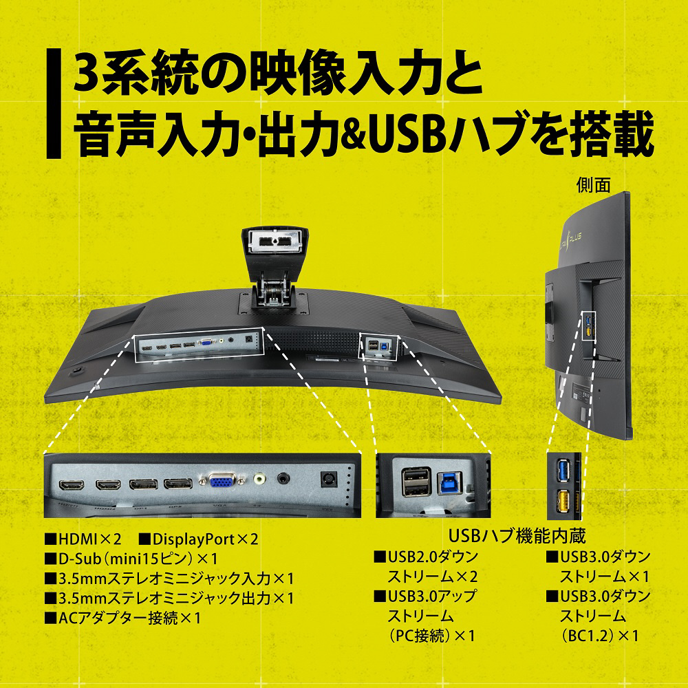 ■インターフェイス[入力コネクタ]ビデオ:D-Sub(mini15ピン)x1、HDMI x2、DisplayPort x2