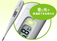 また、同時に液晶画面の横の緑のランプが点滅。ブザーを聞き逃しても、ランプの点滅を見ることで検温が終了しているかどうかを確認できます。