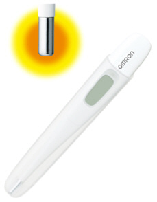 先端が平らになった、オムロン独自のフラット形状を感温部に採用。短時間で体の熱をしっかりとらえることができます。また、わきにしっかりフィットしてずれにくいため、誰でも簡単に正しく検温できます。