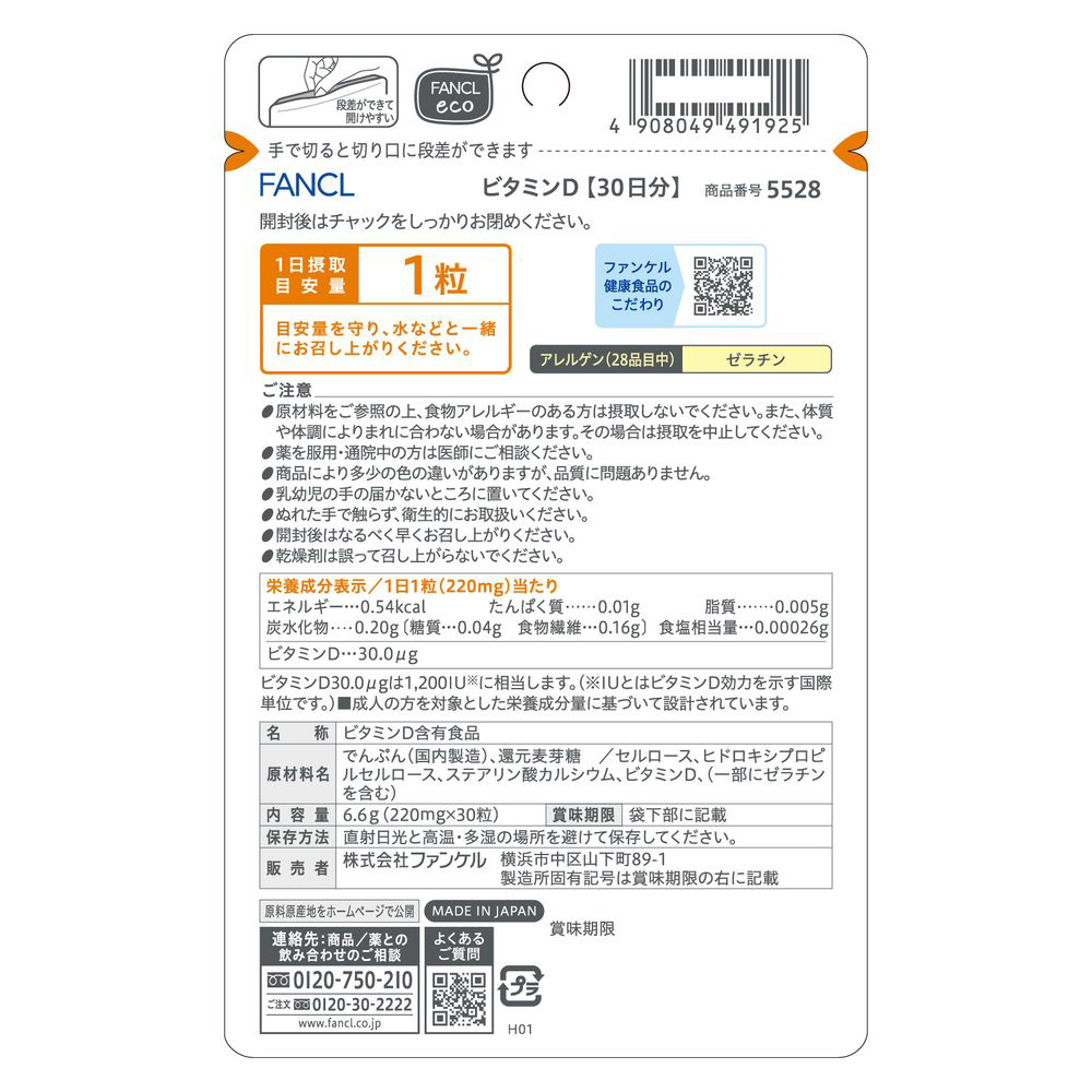 | 商品名 | FANCL(ファンケル) ビタミンD90日分徳用 30粒×3袋 |