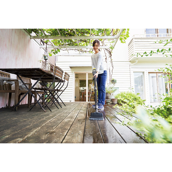 先端のブラシは水ハネを防ぐことができ、90度に回転できるので狭い場所の掃除にも適しています。また、延長ランスがあるので、高い場所や手の届きにくい場所の掃除にも最適です。※ハンドヘルドクリーナー専用のため、高圧洗浄機 K 2〜K 5には適合しません。