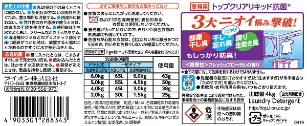 | 商品名 | トップクリアリキッド 抗菌4kg(4000g) |