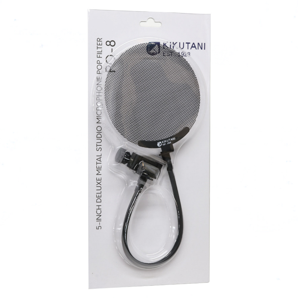 大ヒットポップフィルター、PO-5S をお届けしているKIKUTANI から満を持して登場のメタルポップフィルター ” PO-8”。布製に比べ、音質への影響 が少なくクリアでタイトなサウンドでの録音が可能。グースネック仕様、お好 みの角度、場所にセッティングが可能です。水洗いも可能。いつでも清潔にご使用いただけます。