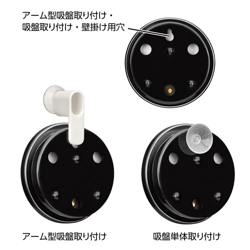 | 仕様1 | 外寸法: (アーム取外し時):約φ67mm×D25mm 外寸法(アーム装着時):約W67mm×H93mm×D27mm 重量: (アーム取外し時): 約22g (アーム装着時) :約25g |