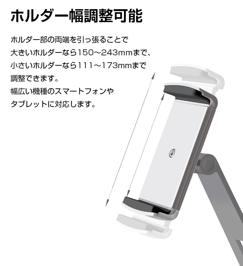 111〜243mm幅のタブレット/スマートフォンに対応したスタンド