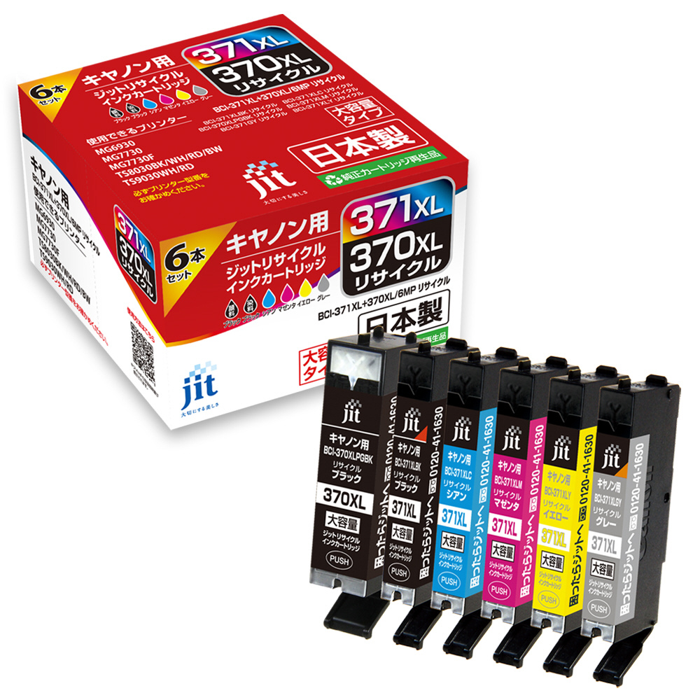 互換リサイクルインクカートリッジ [キヤノン BCI-371XL+370XL/6MP](大容量) 6色パック JIT-BC3703716PXL