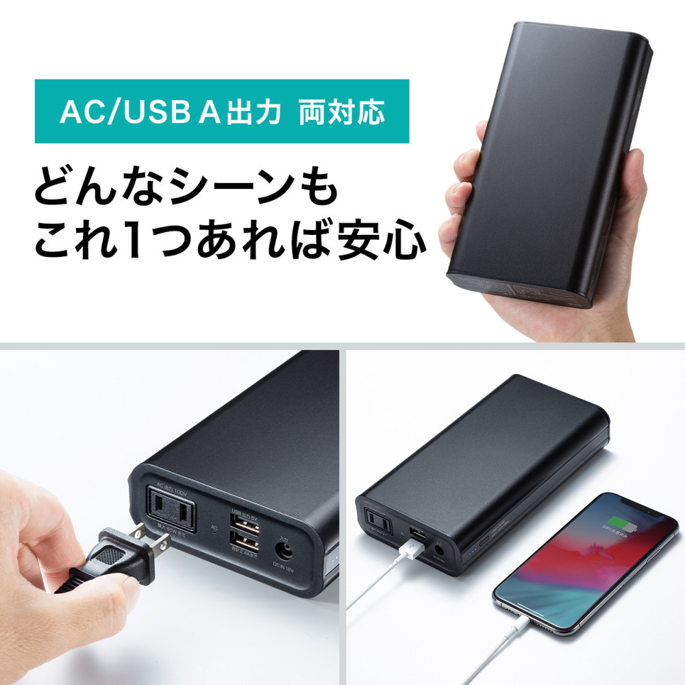 ACコンセントプラグを直接挿せる、AC出力ポートを搭載したモバイルバッテリー。