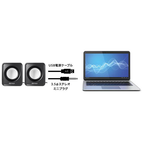 実用最大出力3.6W(1.8W+1.8W)のハイパワー仕様。ノートパソコンの内蔵スピーカーでは満足できないユーザーに最適です。手元で簡単に音量調整可能。ボリュームコントローラー付き