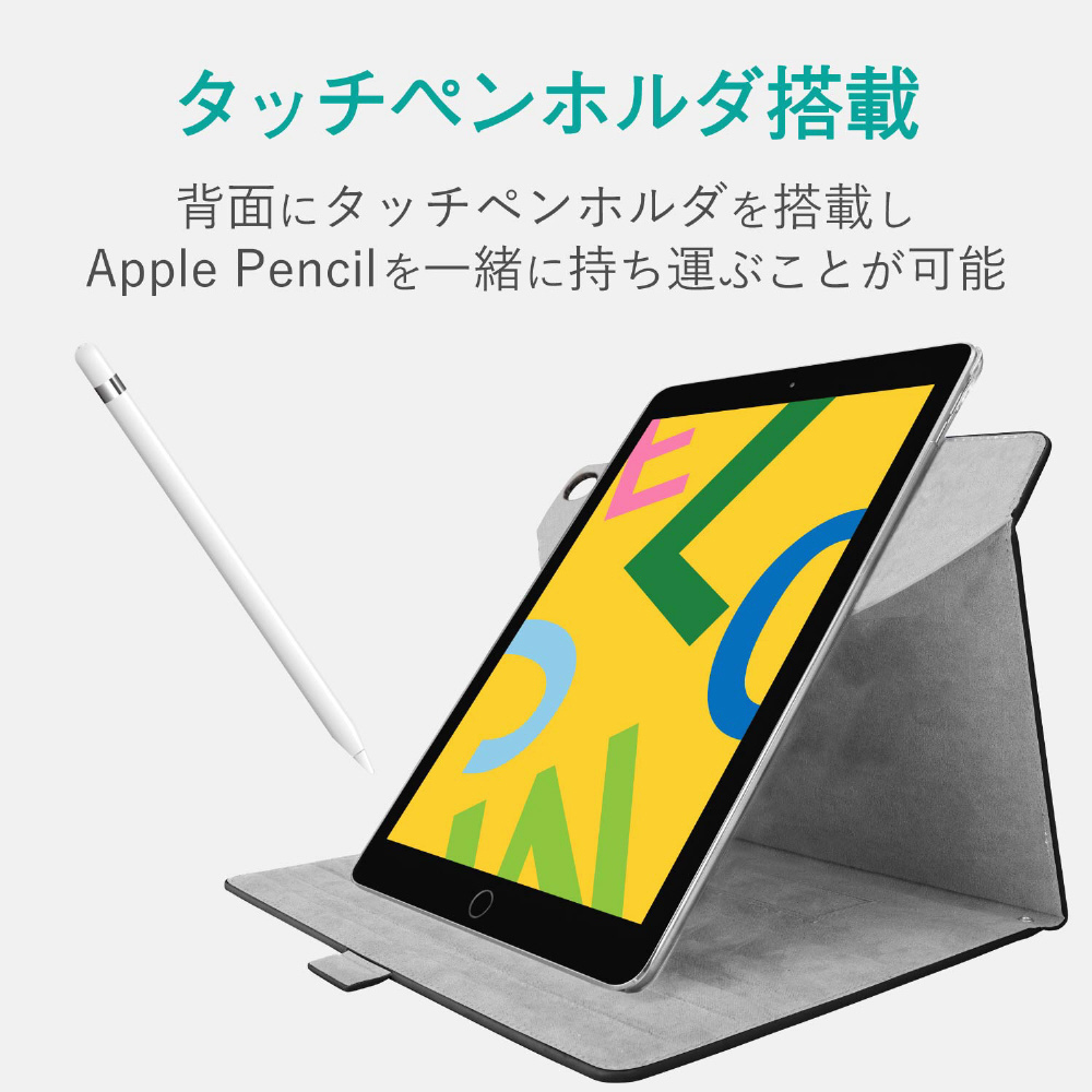 iPad 10.2 モデル/ソフトレザー/360度回転/ブラック TB-A19R360BK