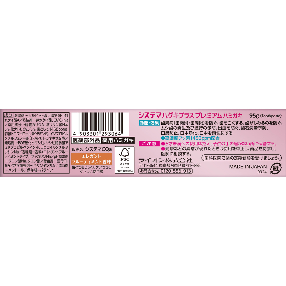 | 商品名 | システマ ハグキプラス プレミアム ハミガキ 95g |