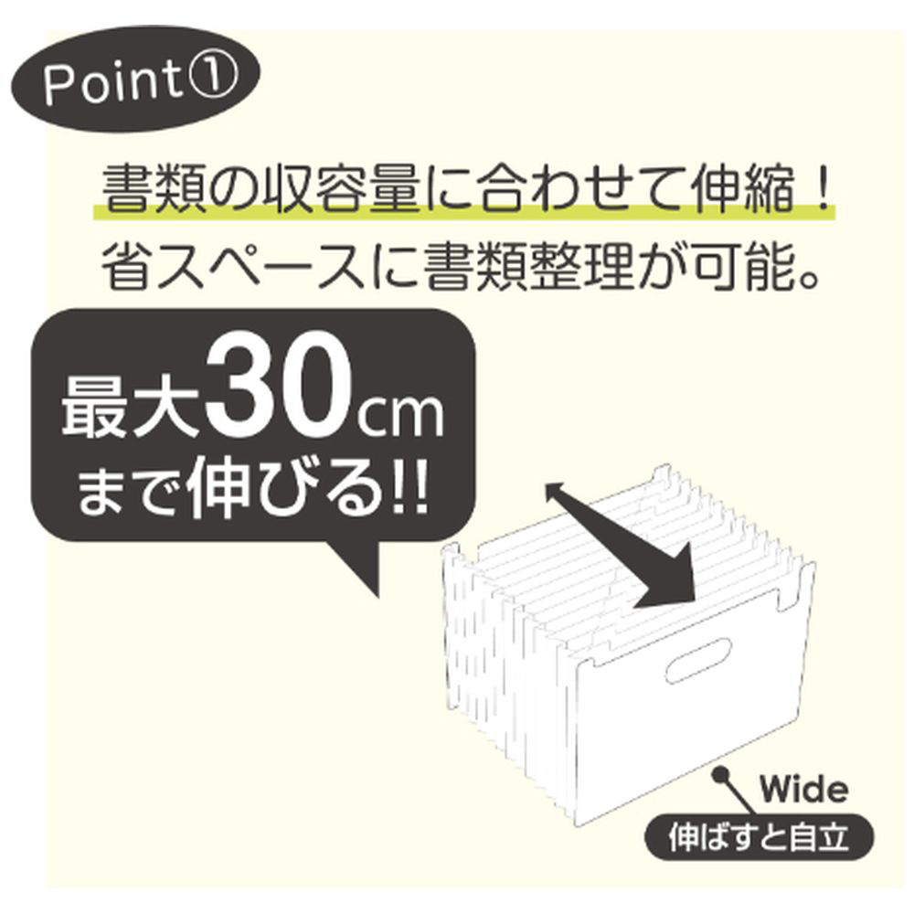 書類の収納量に応じて伸縮!機能的でインテリアにもなじむ木目調の収納スタンド。