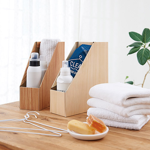 水や汚れに強くて丈夫!インテリアにもなじむ木目調の収納ボックス。