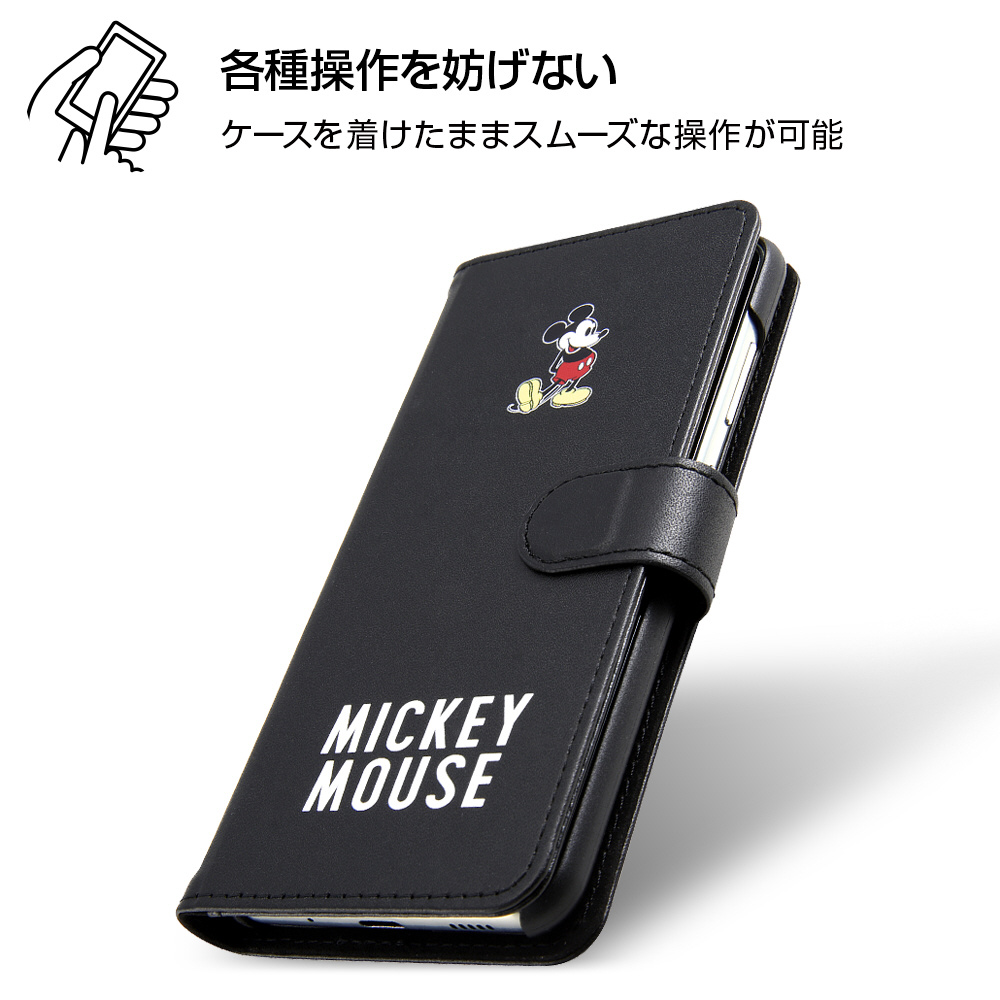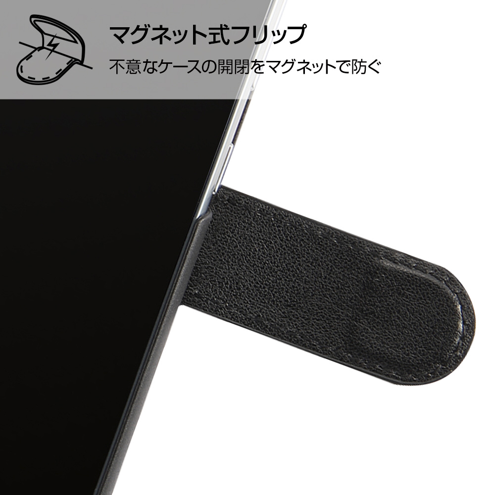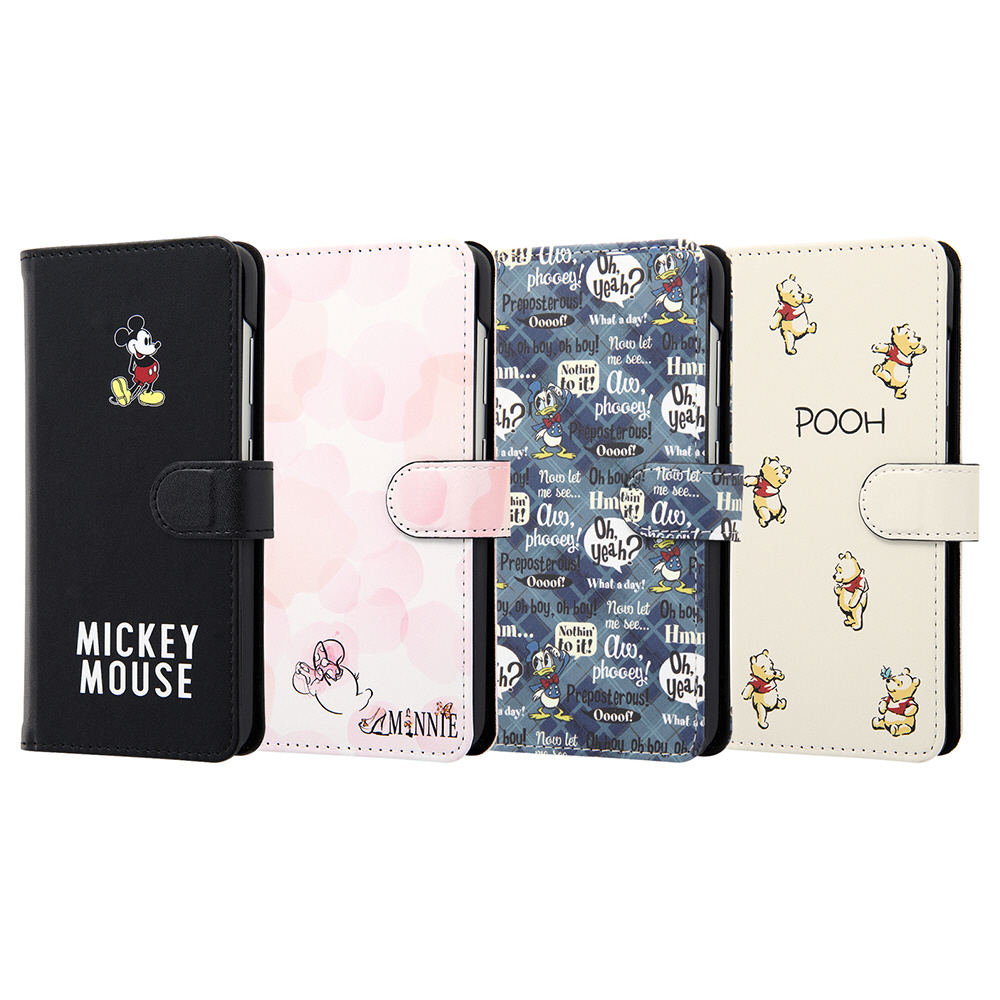 ディズニーキャラクターのアートデザインが全面にプリントされたマグネット付きレザーケース。
