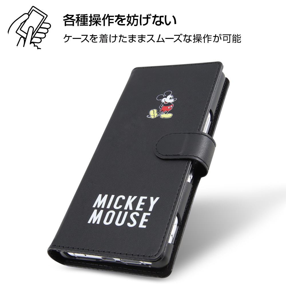 ディズニーキャラクターのアートデザインが全面にプリントされたマグネット付きレザーケース。
