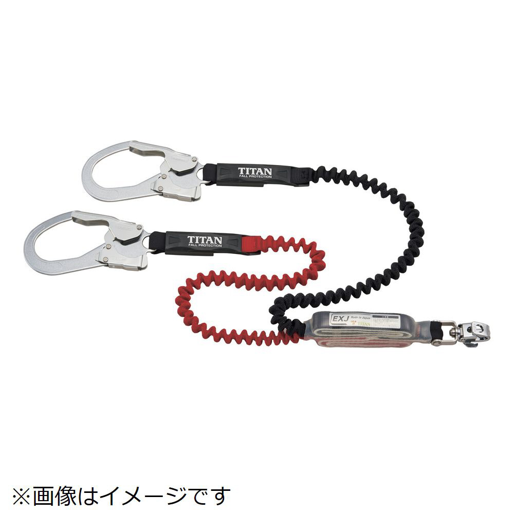 タイタン EXJ伸縮ストラップ式 タイプ1ランヤード ブラック/レッド ダブル (墜落制止用器具) HL-ERW