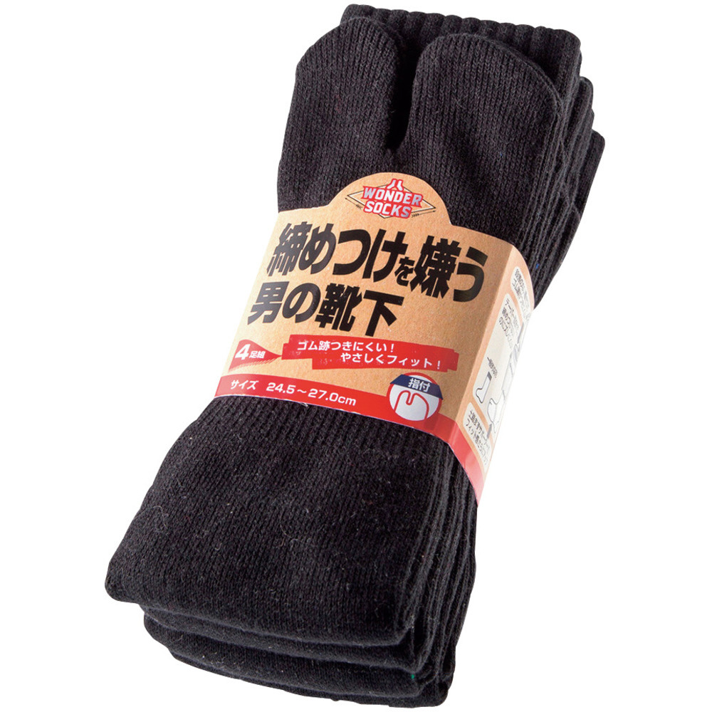 商品名 ユニワールド 締め付けを嫌う男の靴下 指付 ブラック 4足組 WS-9102