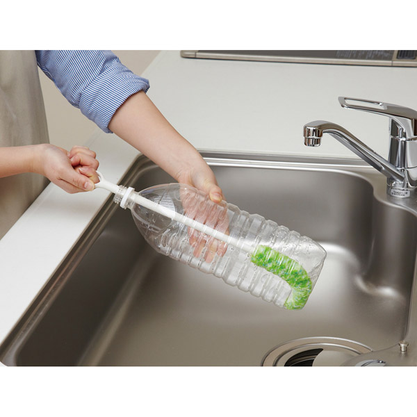 長いハンドルでペットボトルの底やスミもしっかり洗えます。