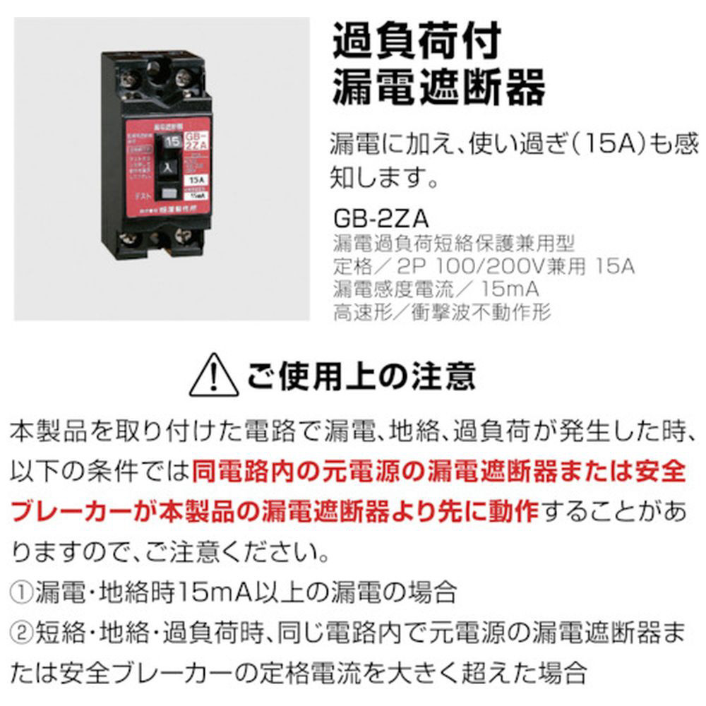 漏電・使いすぎをコンセントの手前で遮断できる漏電遮断器を簡単に設置できます。