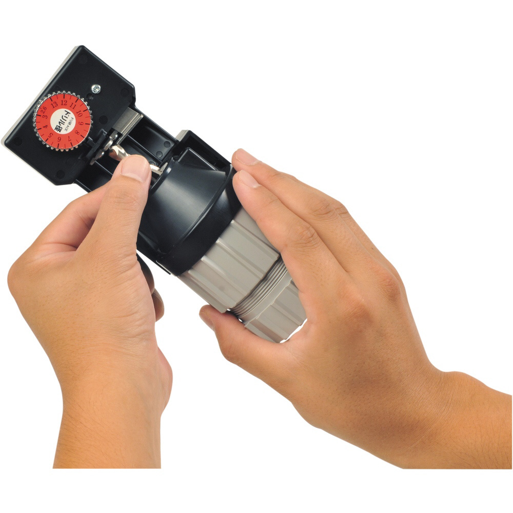 刃先設定後、研摩機本体に差し込むだけで研摩できます。