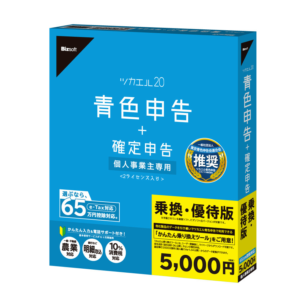 「ツカエル青色申告 20 +確定申告」のお得な乗換・優待版。機能は「ツカエル青色申告+確定申告」とすべて同じ。