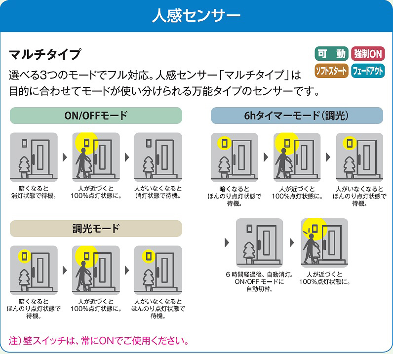 | 仕様1 | 人感センサー付きLEDアウトドアライト |