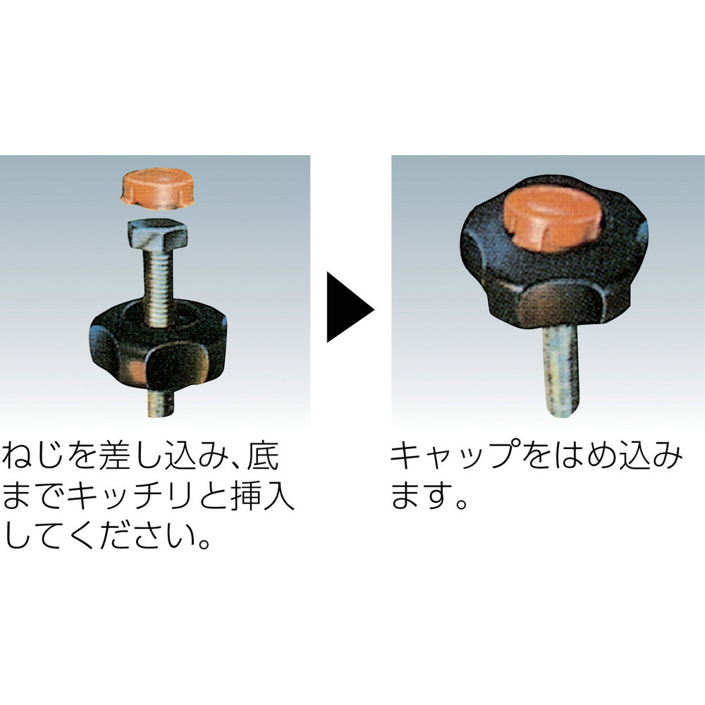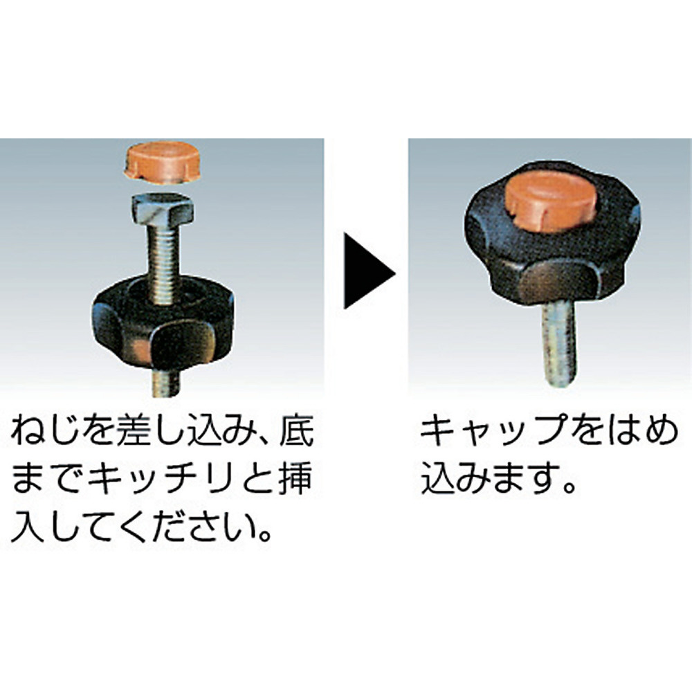 ■市販の六角ボルト、六角ナット3種を組み込むことで、工具を用いずに締め付けができます。