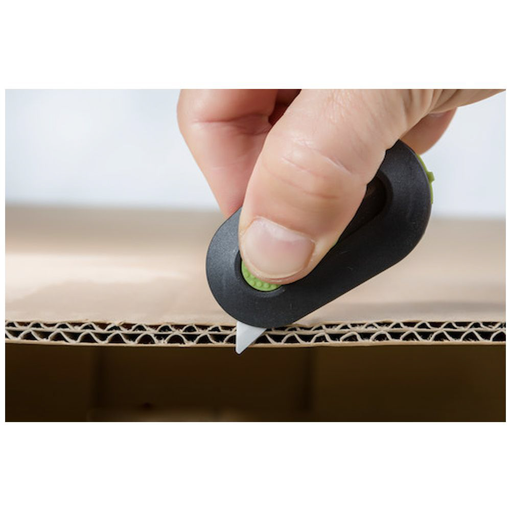 ■グリーンのボタンを指で押すと刃が出て、指を離すと、刃先が自動で収納されます。