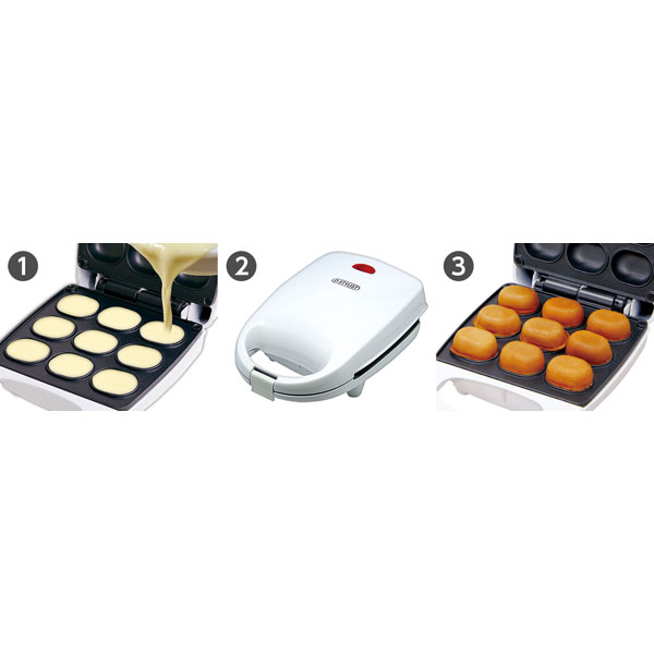 焼き上がり時間たったの約3分。スピーディーにコロンと可愛いベビーカステラが完成します。急な来客のおやつ、お子さまのお誕生日会やホームパーティーにもおすすめです。