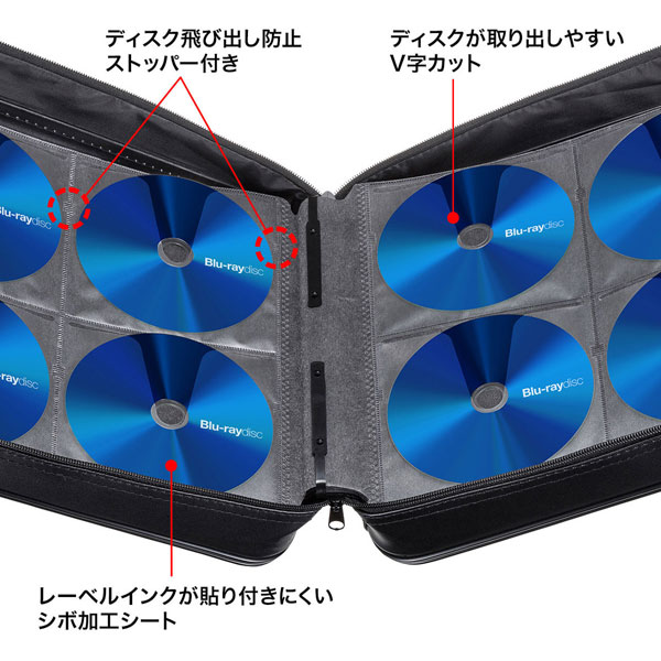 ●ブルーレイディスクの収納に対応した凹凸が少なく柔らかい不織布を採用。