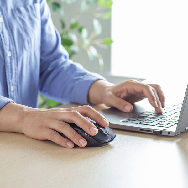 ●マウスポインタを動かさず、手元のサイドボタンにも「戻る・進む」の2ボタンを搭載しており、Webブラウザで操作をスピーディに行えます。