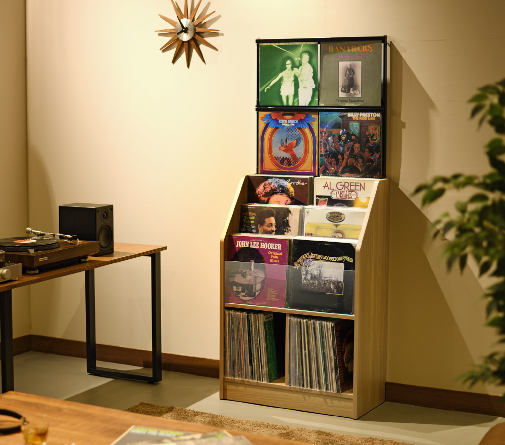 アナログレコードのコレクションをレコード店のようにディスプレイしながら収納できます。