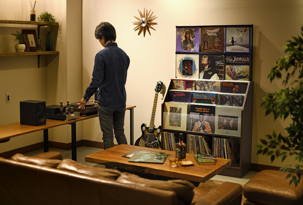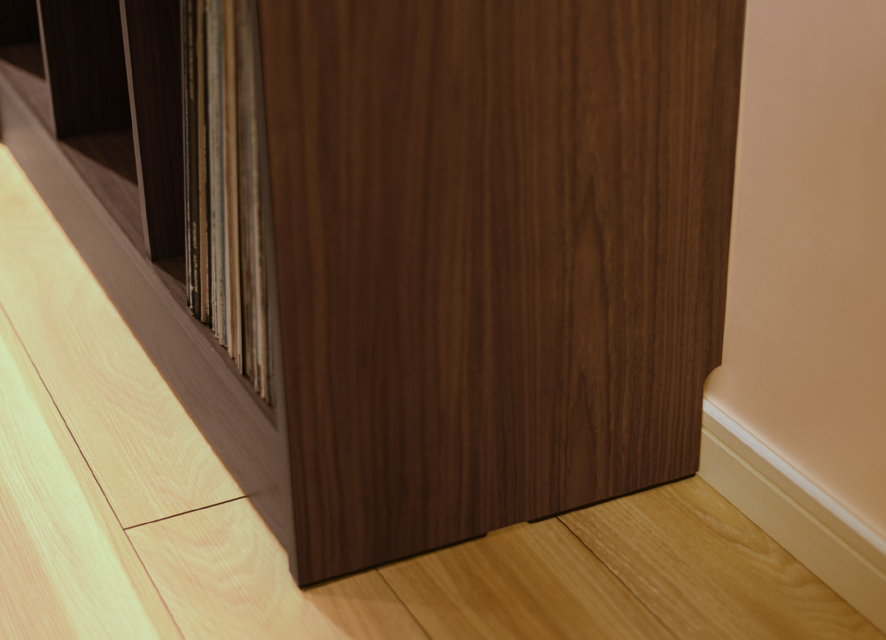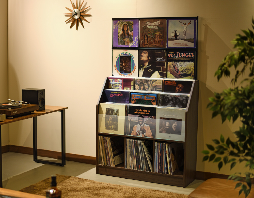 アナログレコードのコレクションをレコード店のようにディスプレイしながら収納できます。