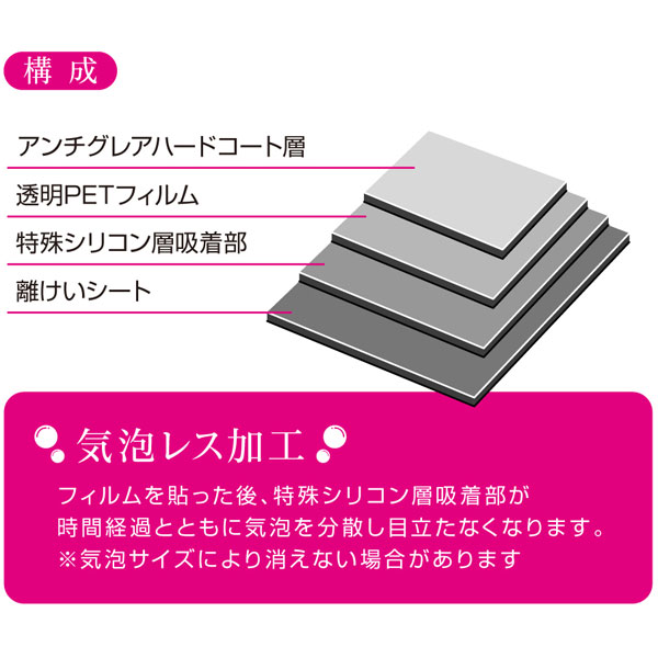 | 仕様1 | [フィルム寸法]305.1×216.5mm [厚み]約0.15mm [重量]約17g [材質]PET(表面)、特殊シリコン皮膜(吸着面) |