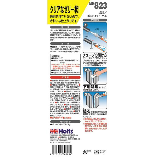| 商品名 | MH823 凸凹垂直両用 瞬間接着剤 ボンドイット ゲル ゼリータイプ |