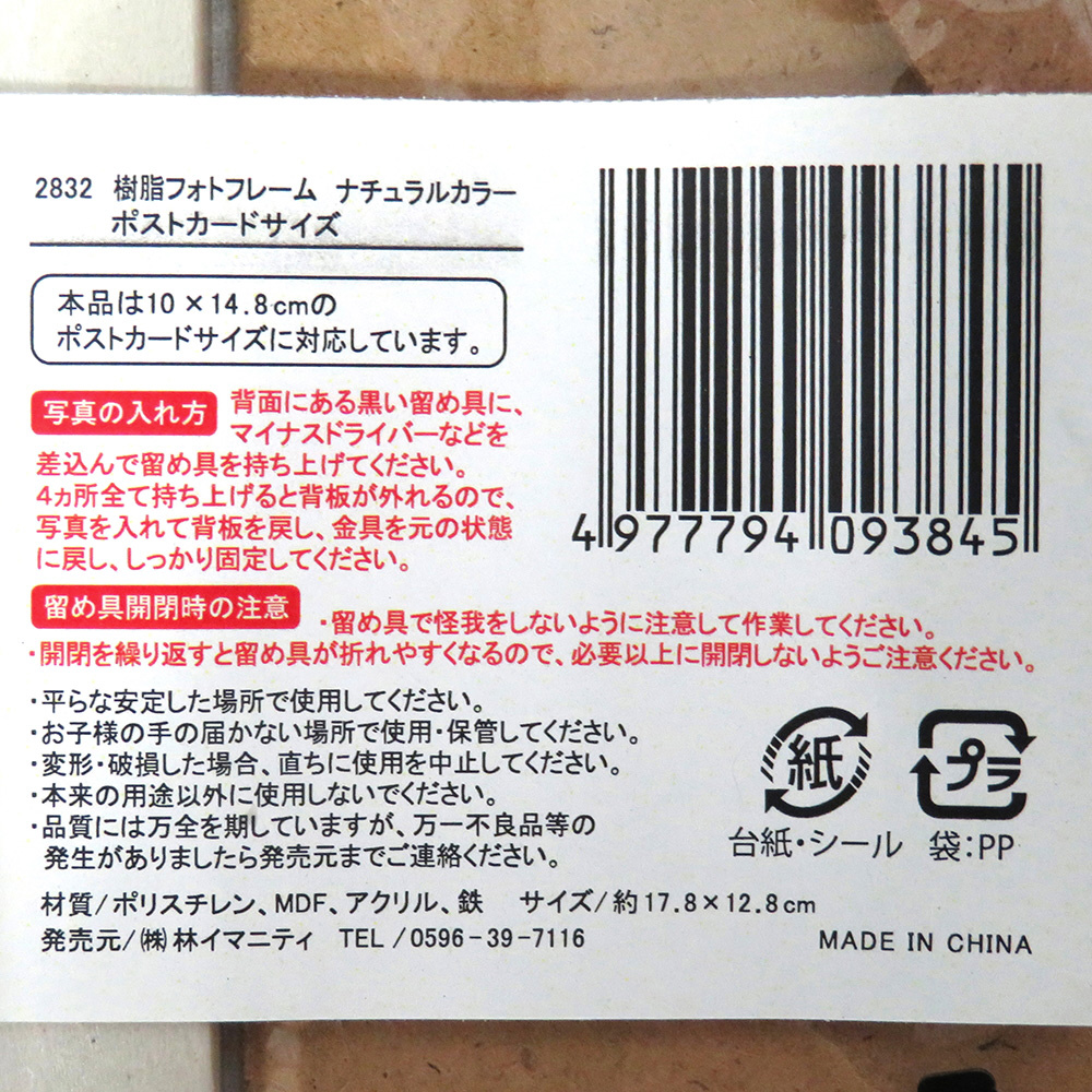 | 商品名 | 2832 樹脂フォトフレーム ナチュラルカラー【色指定不可】 |