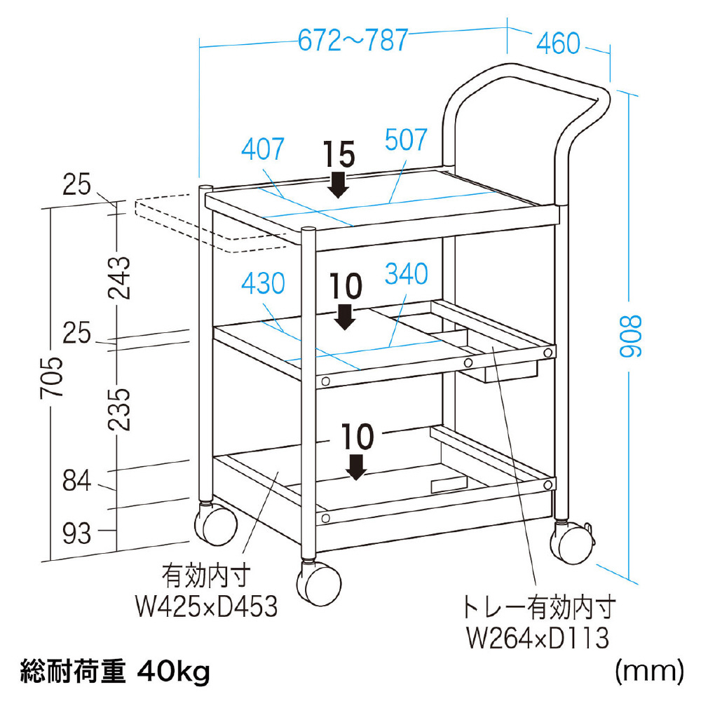 プロジェクターなどの機器の移動に便利なプロジェクターカート。